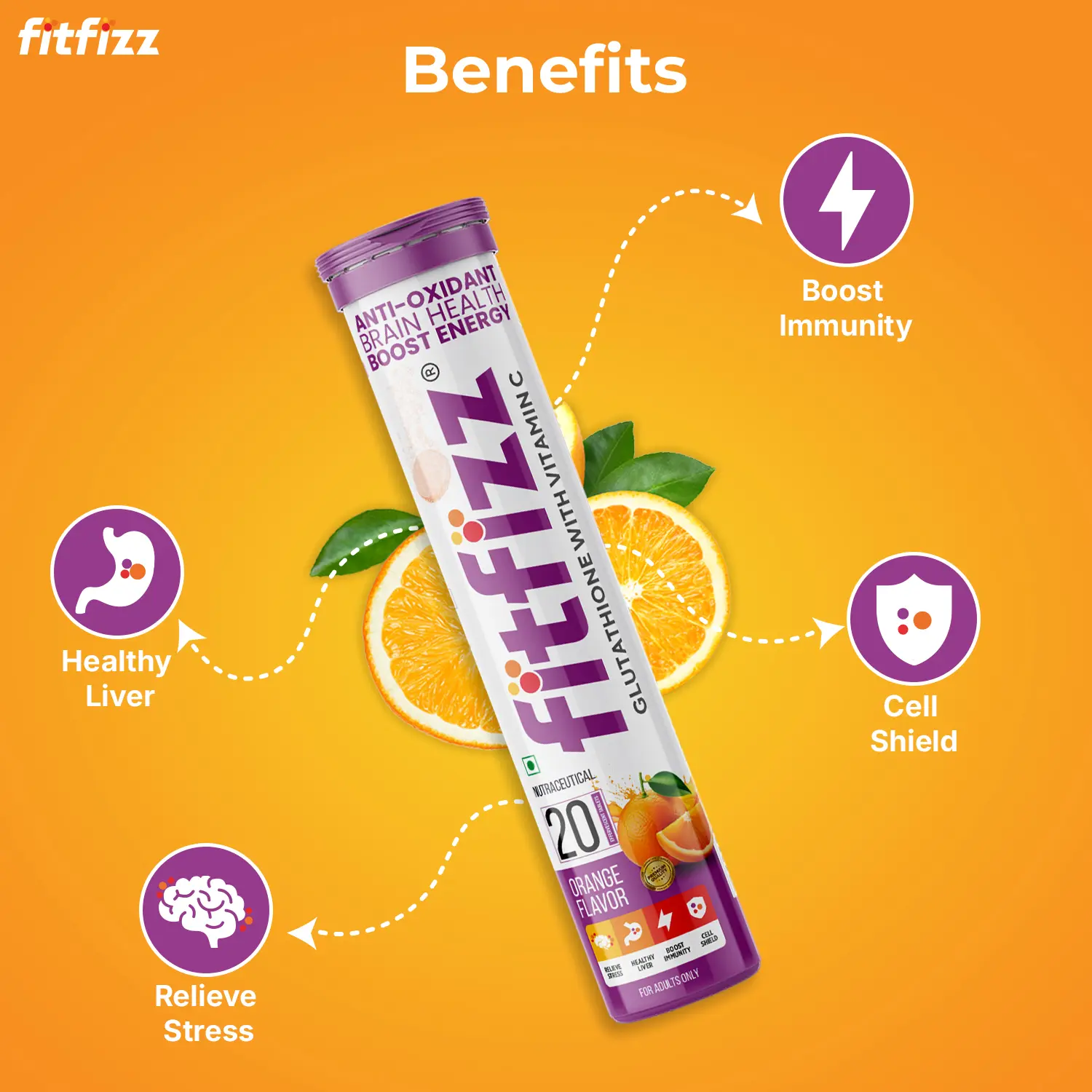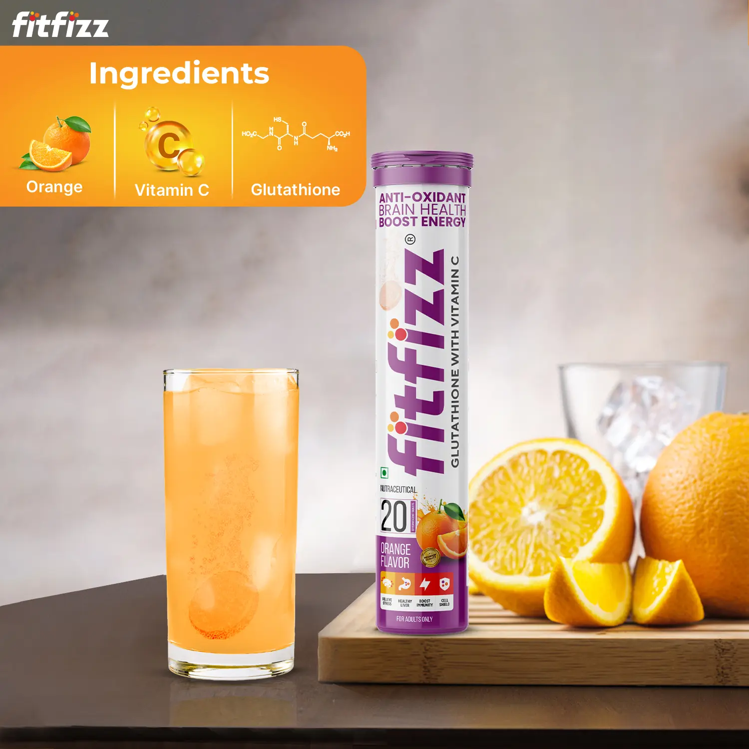 It’s a refreshing orange-flavored effervescent tablet that combines the powerful antioxidants Glutathione and Vitamin C to support skin glow, immunity, and overall vitality.